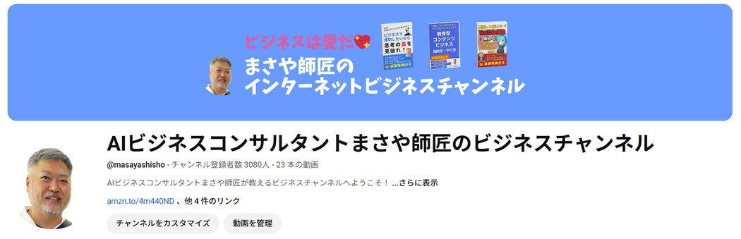 こんにちはYouTubeで「まさや師匠」として活動しております。
